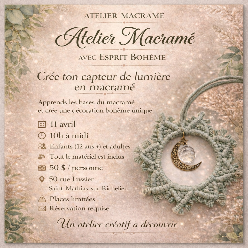 ✨ Atelier Macramé avec Esprit Bohème ✨